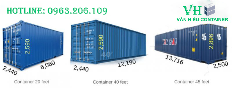Có 3 loại kích thước gồm 10 feet, 20 feet và 40 feet